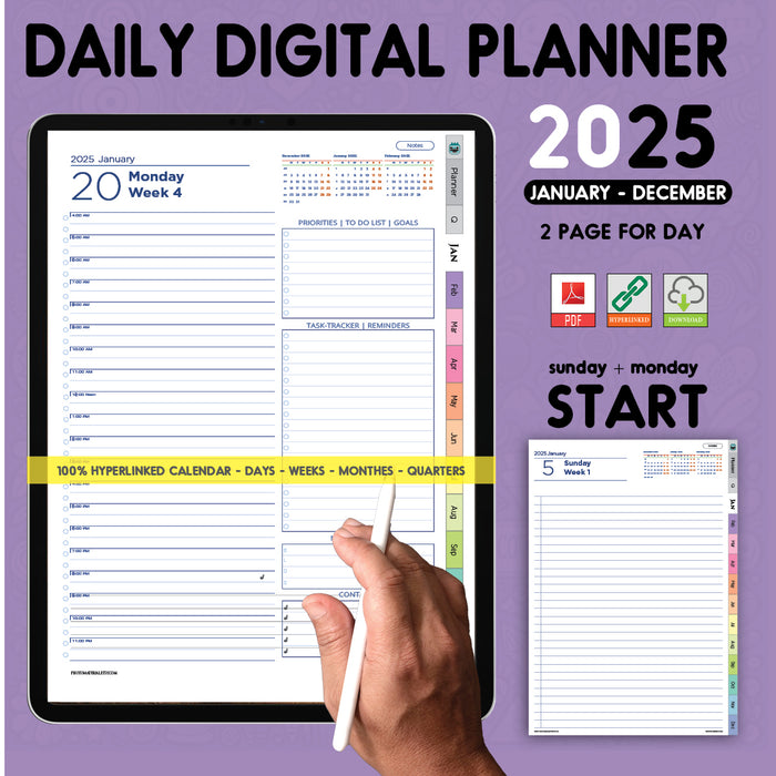 - Two distinct versions of the PDF digital planner: start your week on Monday or Sunday as per your preference.